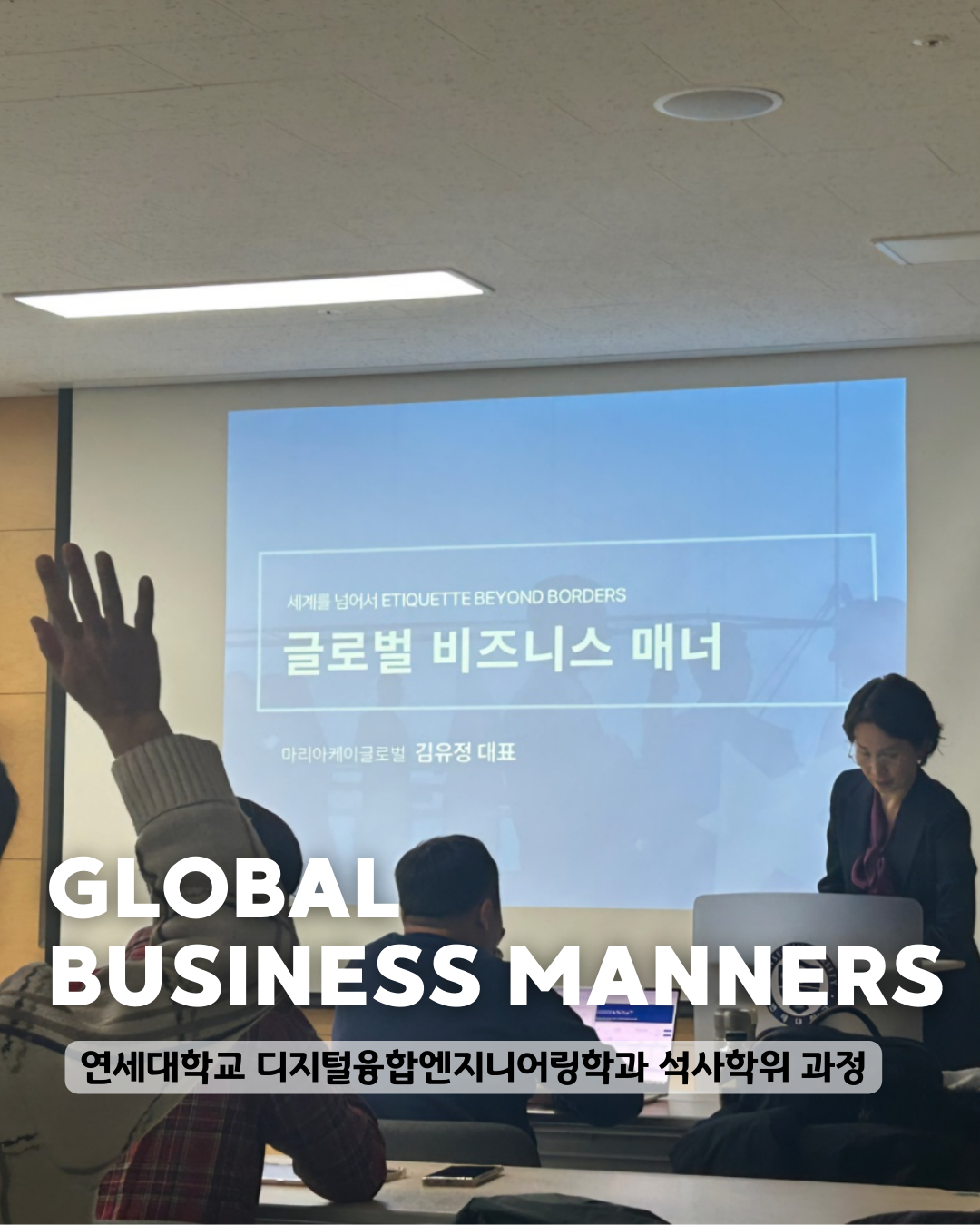 43 | 글로벌 커뮤니케이션 교육 | ![]() 글로벌 비즈니스 매너 강의 - 연세대학교 디지털융합엔지니어링학과 석사학위 과정 | 2025-11-19 | ![]() 우리가 하는 일 > 글로벌 커뮤니케이션 교육 글로벌 비즈니스 매너 강의 - 연세대학교 디지털융합엔지니어링학과 석사학위 과정 | 2 |