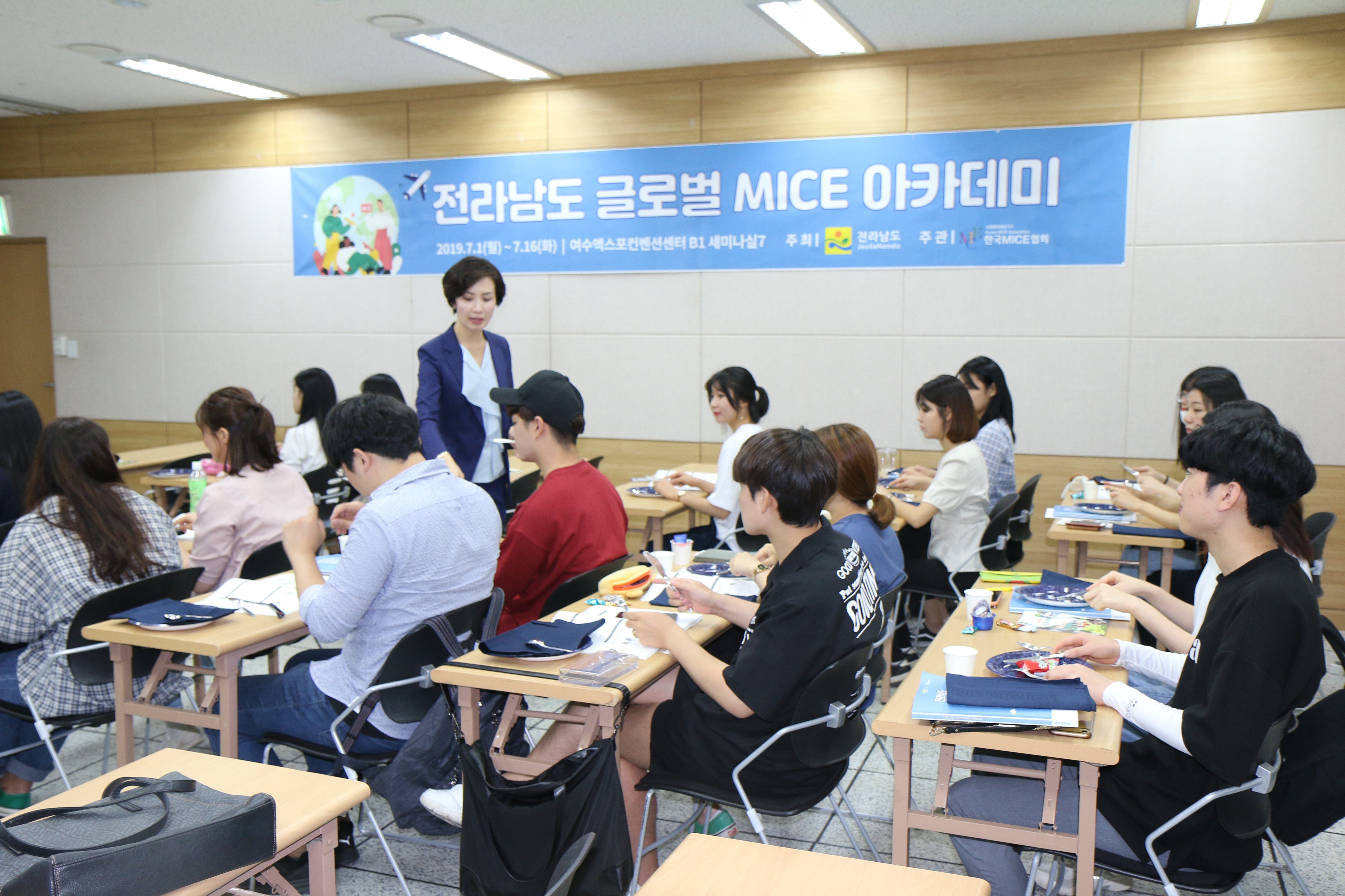 MariaK Global은 2019년 7월 2일(화) MICE업계 진출을 희망하는 대학생(재학생, 휴학생) 및 취업준비생 50여명을 대상으로 여수엑스포컨벤션센터에서 한국MICE협회의 ‘2019 전라남도 글로벌 MICE 아카데미’를 진행 했습니다.