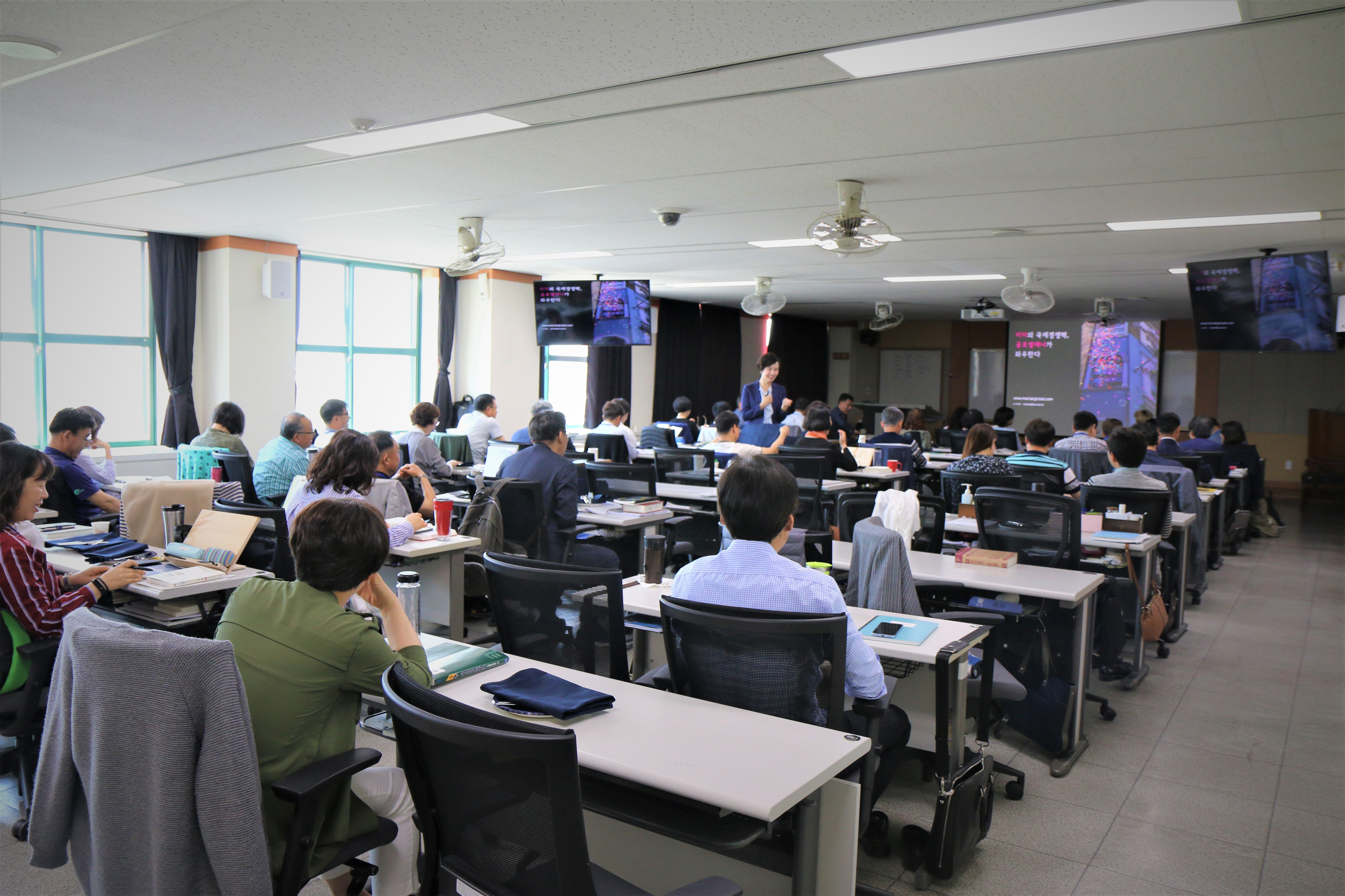 MariaK Global은 2019년 5월 22일(수), 충북 공무원(20년 이상 근무하신 6급 팀장급) 59명을 대상으로 3시간 동안 충청북도 자치연수원의 ‘제16기 중견간부양성' 중 ‘리더의 국제경쟁력, 글로벌매너가 좌우한다’ 강의를 진행 했습니다.